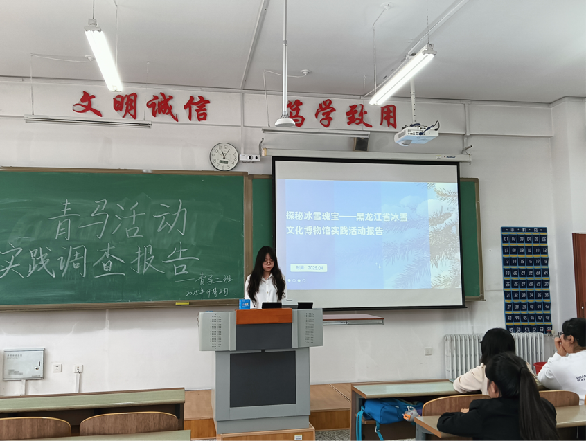 活动过程中,学员们利用课余时间,聚焦乡村振兴、基层治理、文化传承、科技创新等主题,深入社区、乡村、企业开展调研,形成了一批高质量的实践报告。分享会上,10名学员代表依次登台,通过图文展示、数据分析、案例讲解等形式,生动呈现了参观731部队遗址陈列馆、黑龙江省地质博物馆、哈尔滨冰雪文化博物馆,以及关于大学生社会责任感状况、大学生早餐行为健康情况的调研成果。大家纷纷表示,此次活动深刻感受到“从理论中来、到实践中去”的思维转变。作为青马学员,我们不仅要学深理论,更要主动实践,用脚步丈量责任。