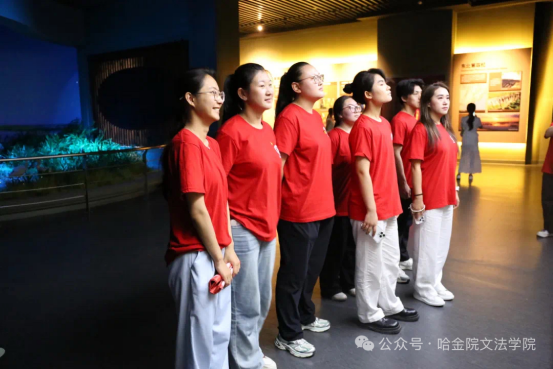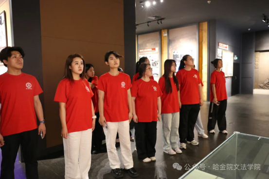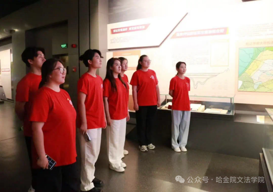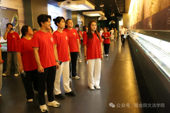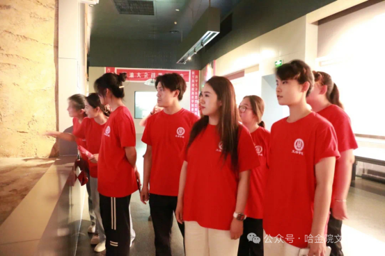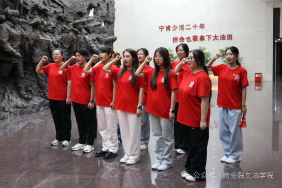 参观结束后,在文法学院团委书记宋春晓的带领下,实践团全体成员面对鲜红的党旗,庄严地举起右拳,重温入党誓词。通过此次参观学习和宣誓活动,实践团成员们更加坚定了理想信念,纷纷表示要传承和弘扬铁人精神,在今后的学习和生活中,以铁人精神为指引,努力克服困难,勇于担当作为,为实现中华民族伟大复兴的中国梦贡献自己的力量。
