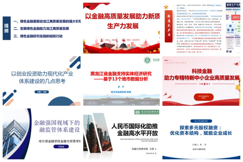 论坛中,哈尔滨学院副校长吴旭峰,哈尔滨商业大学姚凤阁教授,江西财经大学肖峻教授,我校史宁教授、刘金波教授、肖南云副教授、王新副教授、汤洋副教授八位专家学者,就“黑龙江省绿色金融高质量发展思考”“以金融高质量发展助力新质生产力发展”“以创业投资助力现代化产业体系建设的几点思考”“黑龙江省金融支持实体经济研究——基于13个地市数据分析”“金融强国视域下的金融监管体系建设”“科技金融助力专精特新中小企业高质量发展”“人民币国际化助推金融高水平开放”“探索多元股权融资:优化资本结构,赋能企业成长”等金融助力龙江经济高质量发展问题,同线上线下与会教师进行交流分享。