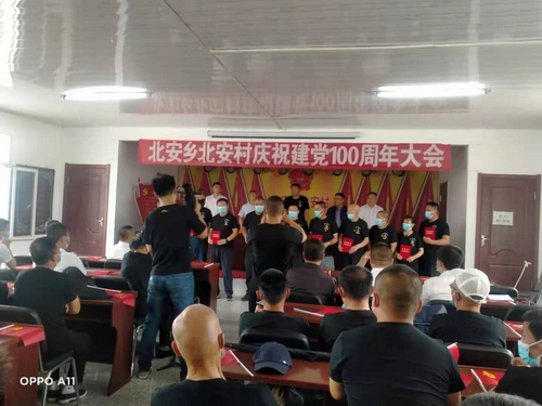 上午9:30,北安乡北安村庆祝建党100周年党员大会在村委会二楼会议室举行,学院领导、北安乡党委班子、驻村工作队、北安村村两委及全体党员、村民代表参加了此次大会。大会内容:讲党课、评选2020年度优秀共产党员并颁发荣誉证书、重温入党誓词、文艺演出等,同时,给贫困户发放鹅雏。