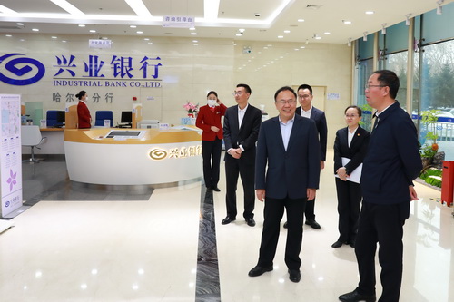 张林一行首先参观了兴业银行哈尔滨分行网点建设情况,对企业现状、企业文化、业务发展、党建工作等情况进行了解。