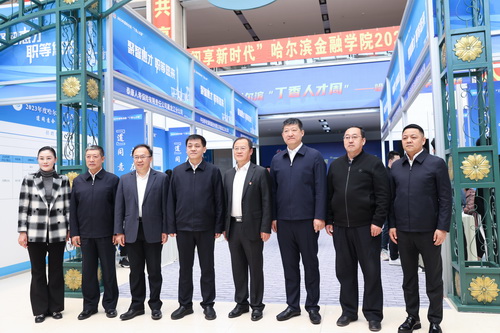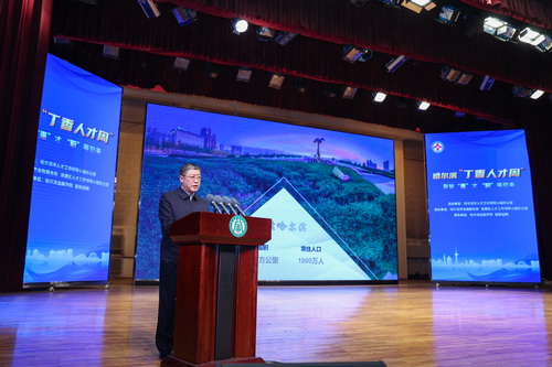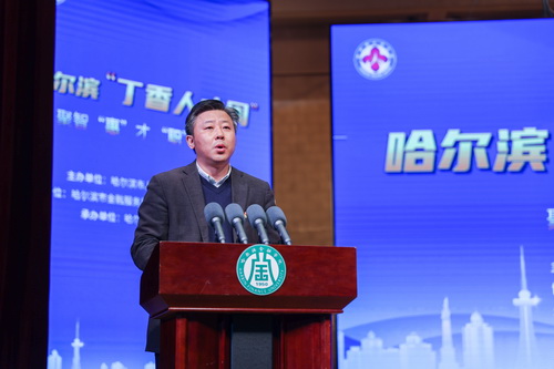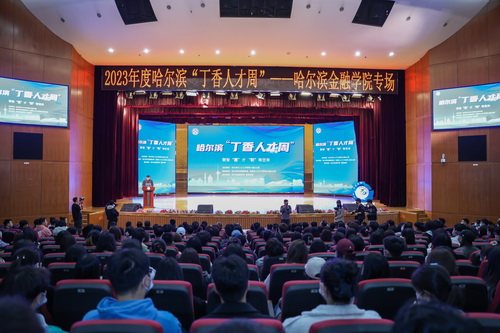 为全面贯彻党的二十大精神,全面落实省委、市委人才工作会议精神和市委组织部关于“哈尔滨丁香人才周”活动部署,深入实施市“人才新政30条”,4月27日,由哈尔滨市人才工作领导小组办公室主办,市金融服务局、道里区、哈尔滨金融学院承办的2023年度哈尔滨“丁香人才周”宣讲推介会在金苑会堂举行。学校党委书记刘小辉,党委副书记、校长张林,哈尔滨市委组织部副部长、市委非公有制经济组织和社会组织工作委员会书记郭世军,哈尔滨市金融服务局副局长邵伟,道里区区委书记董继文,道里区区委常委、组织部部长车永辉,哈尔滨市人社局人力资源服务中心主任杜忠家,哈尔滨市各有关部门、县(市、区)和引才单位负责同志及我院2023届毕业生、在校生代表共计800余人出席宣讲推介会。会议由副校长蒋鲲主持。